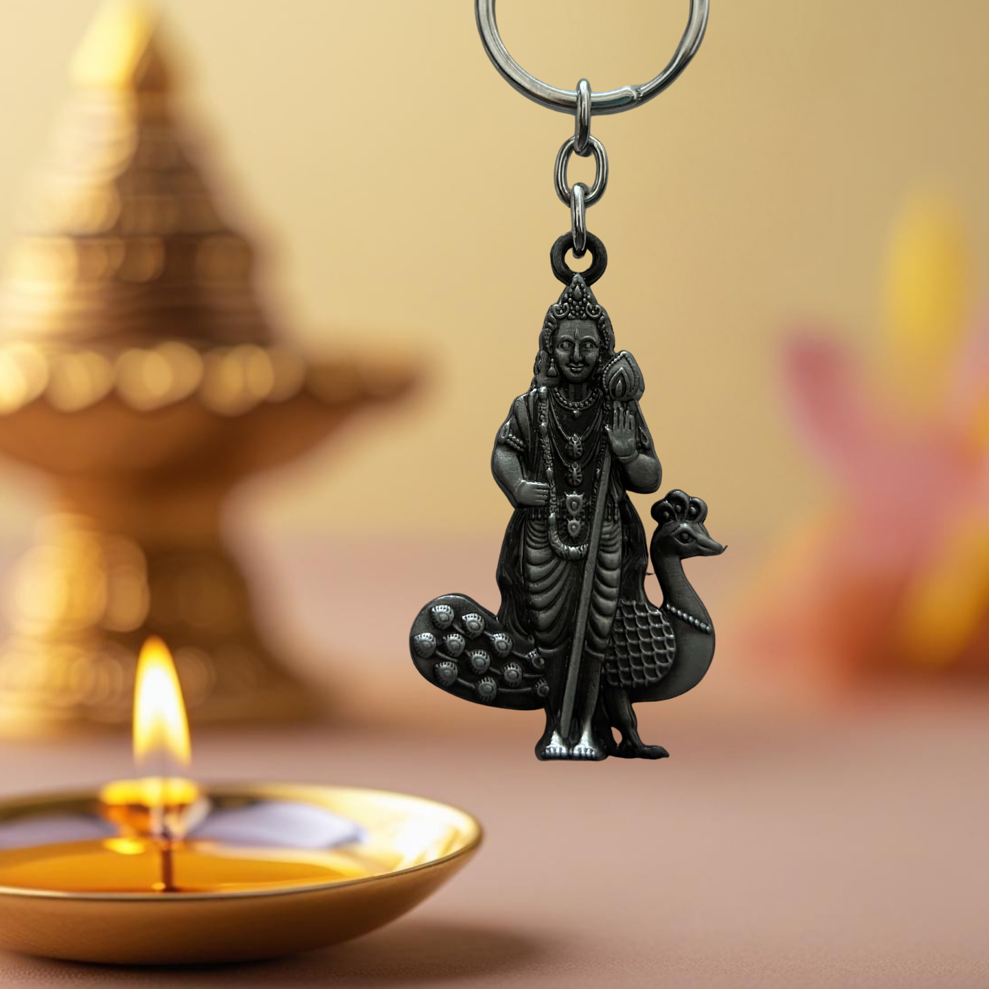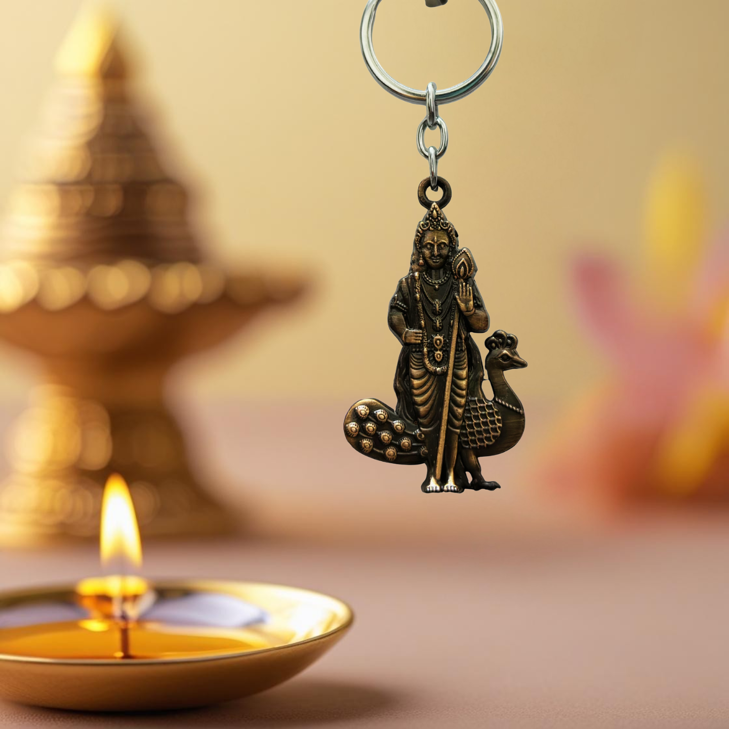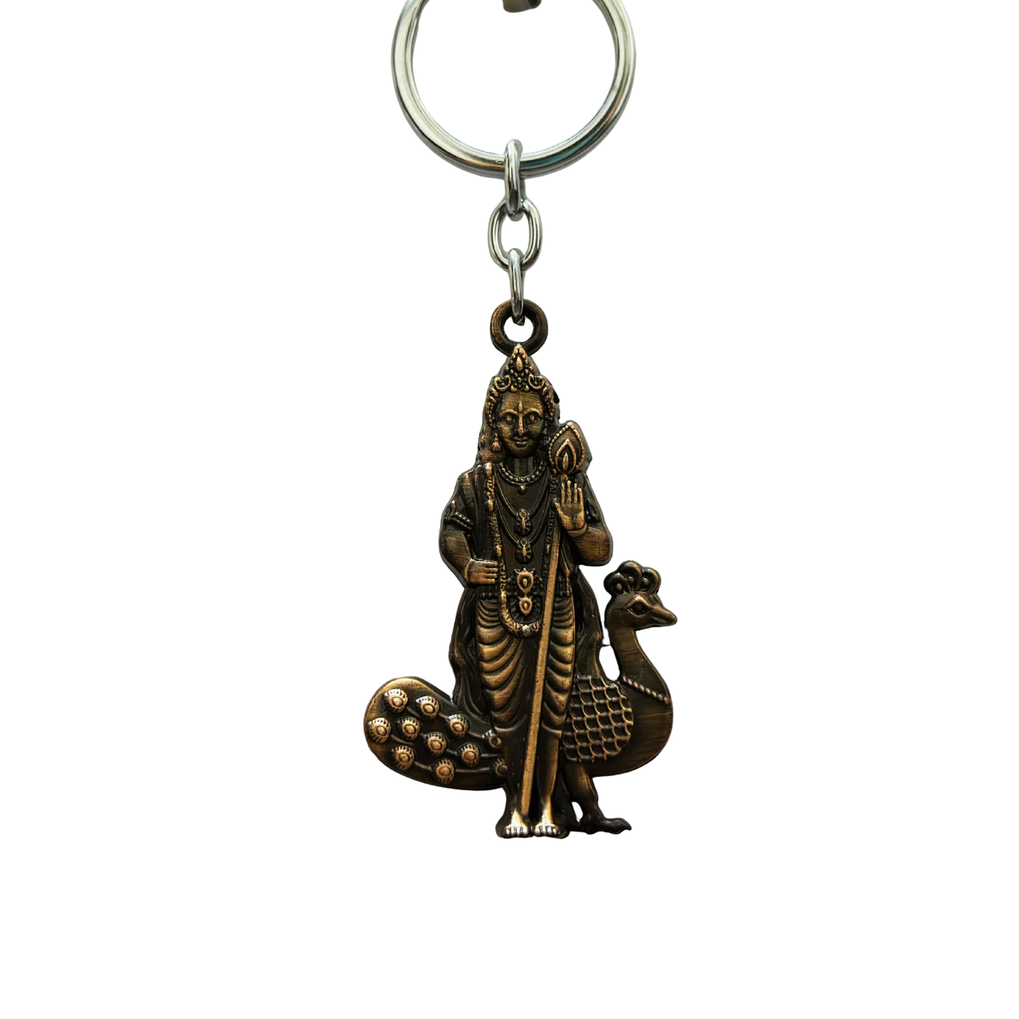 Murugan Keychain Metal | Kartikeya Idol Key Ring in Antique Copper – Lord Murugan Car & Bike Keychain by Blessing Lights
